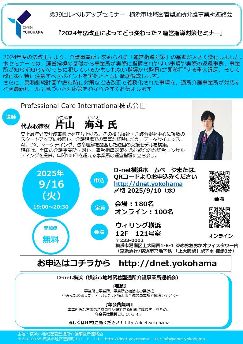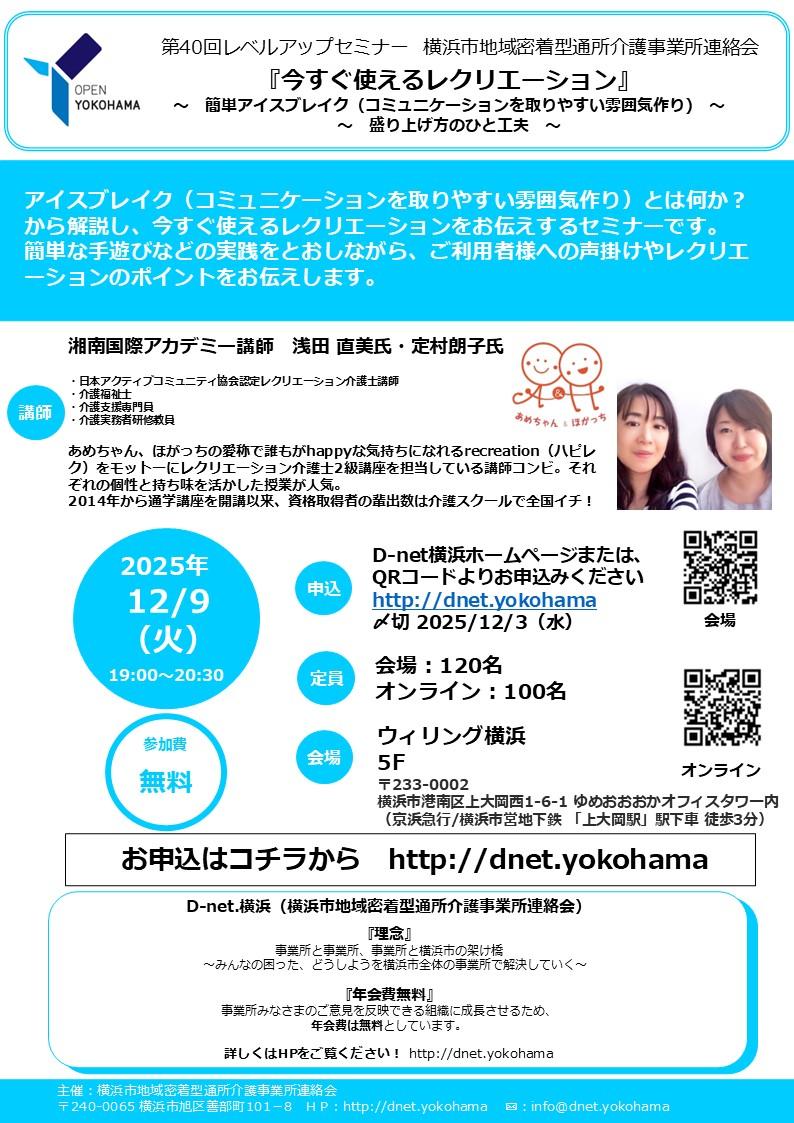 | 2019.8 | メールアドレスをinfo@dnet.yokohamaに変更しました。 |